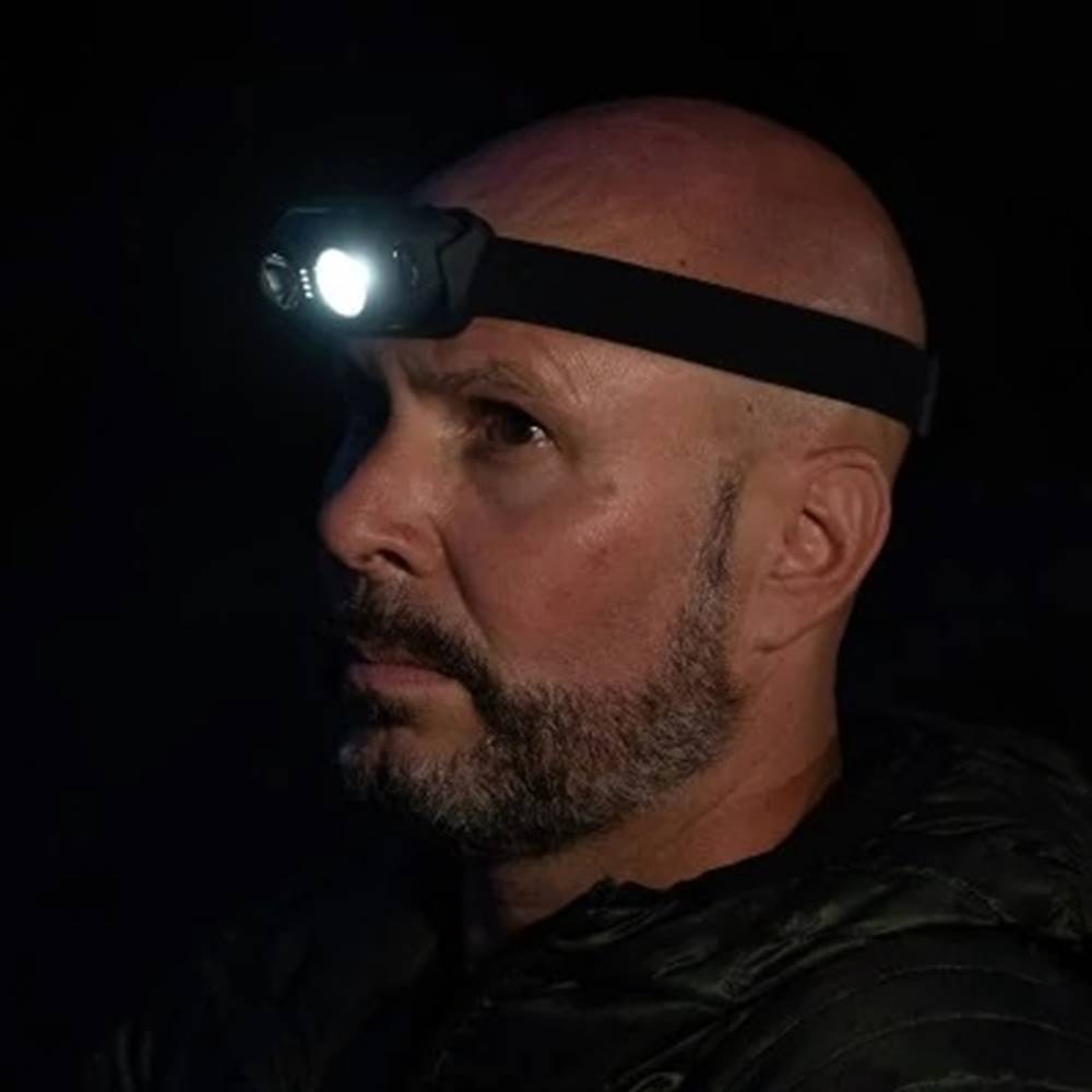 Linterna recargable de cabeza de la marca Ridge Monkey, modelo VRH150X Pro, ideal para las sesiones nocturnas de pesca.