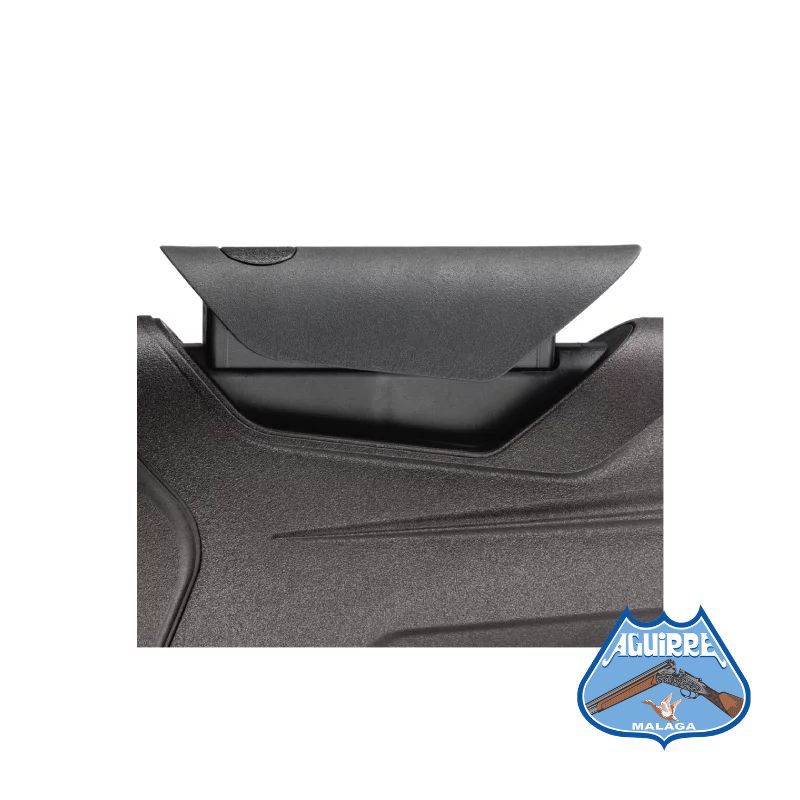 La culata sintética profesional incorpora módulos intercambiables que permiten ajustar la longitud de tiro a la complexión y estilo del tirador, ofreciendo adaptabilidad completa y confort en disparos repetidos. La empuñadura de pistola optimizada ergonómicamente mejora la sujeción y estabilidad, tanto para tiradores diestros como zurdos, mientras que las inserciones de agarre con textura avanzada aseguran control total en condiciones húmedas, frías o con guantes.