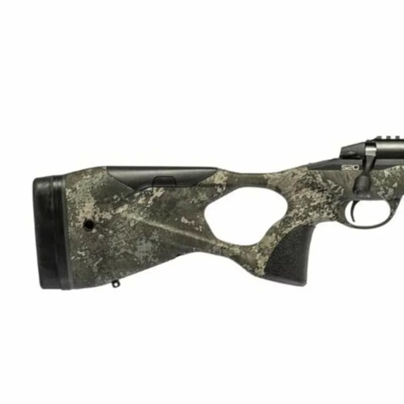 El acabado Strata, diseñado para integrarse con el entorno natural, hace del S20 una herramienta ideal para el cazador exigente que busca rendimiento sin comprometer estilo. Todo en este rifle está pensado para durar, resistir y rendir al más alto nivel, con una acción suave, un sistema de seguridad fiable y una modularidad que permite personalizarlo según tus preferencias de tiro o entorno.