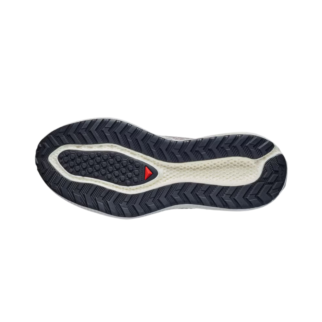 Aquí es donde la denominación GRVL cobra sentido. Salomon ha implementado una variante específica de su compuesto Contagrip. El diseño del taqueado no es tan agresivo como el de una Speedcross, pero es significativamente más profundo y espaciado que el de una zapatilla de asfalto convencional.