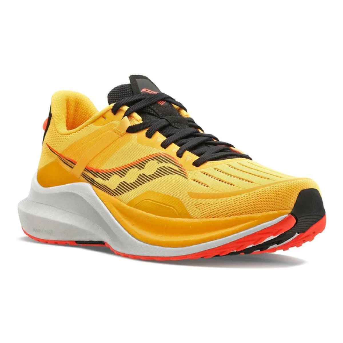 En cuanto al upper de la zapatilla, al igual que lo vienen haciendo la mayoría de las marcas, saucony también se suma a preservar la naturaleza y han creado una malla de alto rendimiento con materiales reciclados. Esta malla es una malla muy técnica que nos aportara una gran transpirabilidad. Por otra parte, la disposición de los cordones nos ayudara con el ajuste de la zapatilla en el antepié y el gran ajuste que notaremos en la parte del talón, nos aportara un punto de estabilidad mas que agradeceremos a la hora de utilizarla para correr.