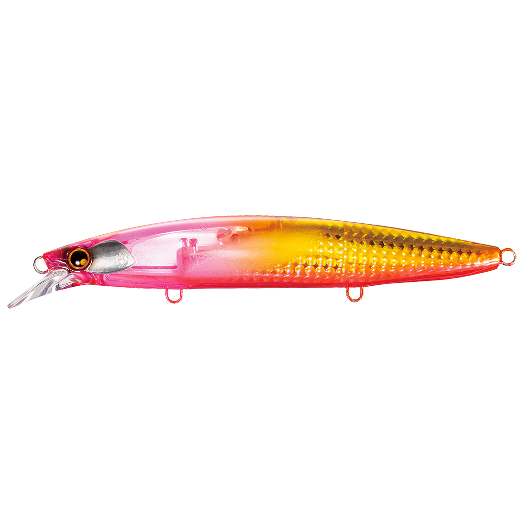 El señuelo Hirame Minnow Flash Boost cuenta con un mecanismo de brillo incrementado gracias al espejo reflector que cuelga dentro del cuerpo con un resorte. El nada del señuelo intensifica las vibraciones, las cuales generan un destello más intenso debido a la acción de la varilla. Esta fabricado con el sistema AR-C (pistón), única de Shimano®, ello le permite incrementar las distancias de lanzamiento, gracias a su tecnología patentada, la cuál, combinada con su gran nado, hacen de este señuelo el ideal para la pesca de Lenguado, Corvina, Róbalos y otras especies depredadoras.