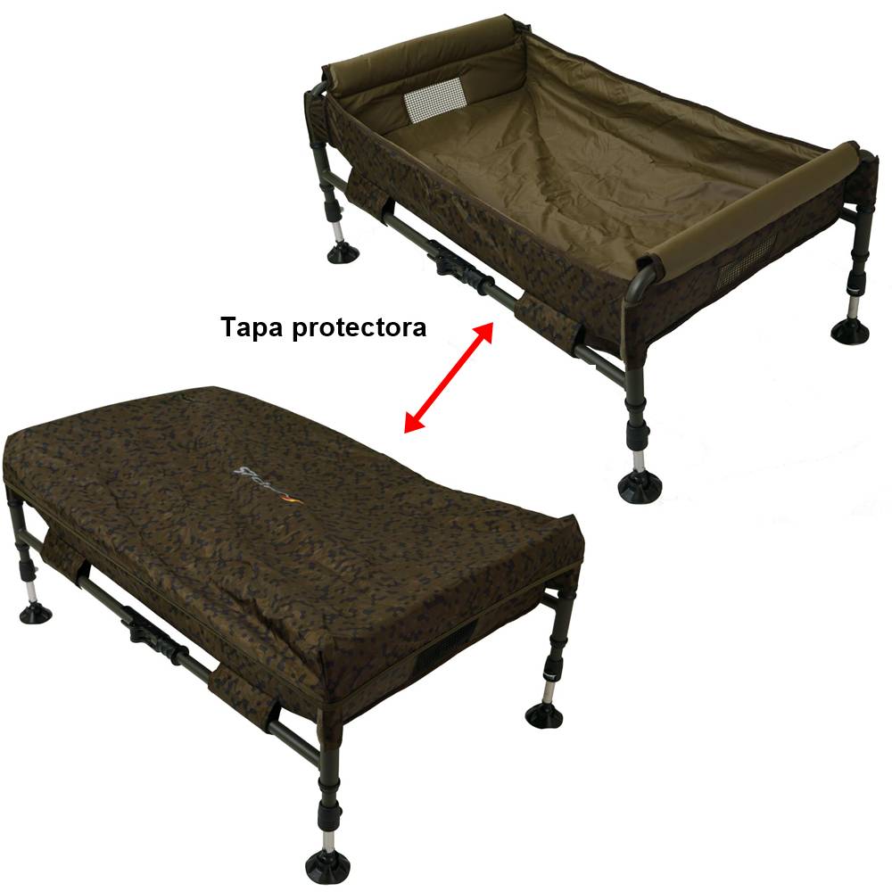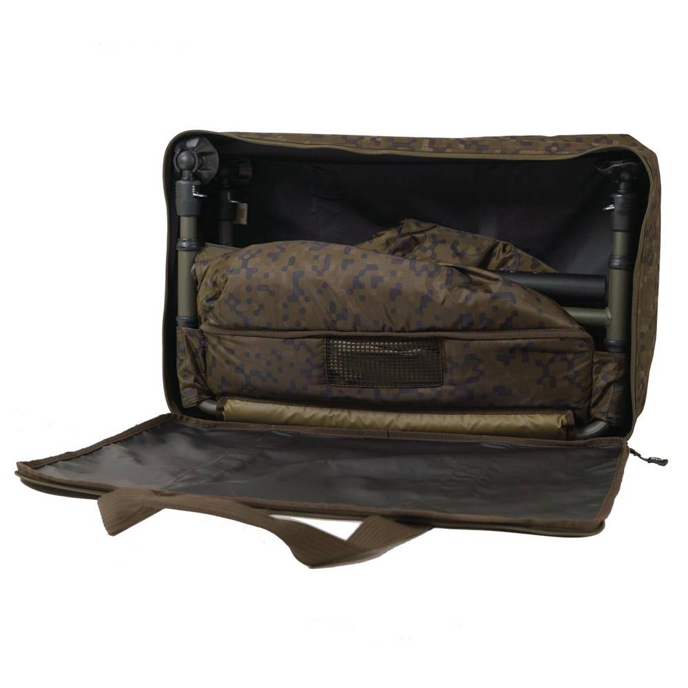 El marco de acero reforzado garantiza una larga vida útil, y el interior recubierto de PVC es fácil de limpiar y permanece libre de olores. Completamente equipada con una bolsa de transporte camuflada premium 600D SP C-Tech y acabada en un elegante patrón camuflado, esta cuna es una opción práctica y duradera para cualquier pescador de carpfishing.