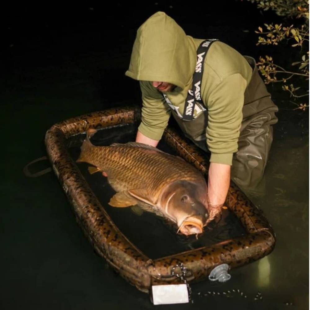 El tejido SP C-TECH Camo, resistente a la abrasión, protege tus capturas y garantiza una larga duración. La tapa se cierra con velcro y cuenta con bolsillos para lastre, manteniéndola sumergida y oculta durante la fotografía. Cuatro robustas asas de transporte facilitan su transporte, mientras que la malla revestida proporciona mayor durabilidad.