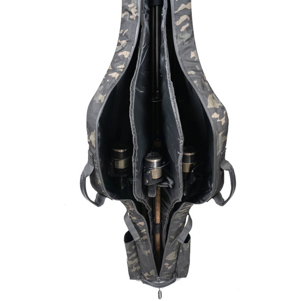 Nuestro SP 3 + 2 Rod Holdall es tan popular que hemos utilizado el mismo diseño para nuestra nueva gama UnderCover. Hecho de 600D camuflado, material con respaldo de PU con acolchado completo, con capacidad para 3 cañas con carretes en el inetrior y 2 cañas con carrete o sacaderas externamente. Los separadores internos individuales y las correas de velcro mantienen sus cañas aisladas sin roces y seguras. Hay dos bolsillos externos con cremallera con bases reforzadas para las picas, sacadera, etc. También cuenta con asas de transporte y una correa para el hombro acolchada ajustable. Caracteristicas: 600D, respaldo de PVC, tela de camuflaje Relleno integral Divisores internos acolchados Toma 3 cañas con carrete confeccionadas internamente y 2 cañas con carrete / sacaderas, externamente Correa de hombro acolchada y ajustable Dos bolsillos externos con cremallera con bases reforzadas para el almacenamiento de banksticks, etc.