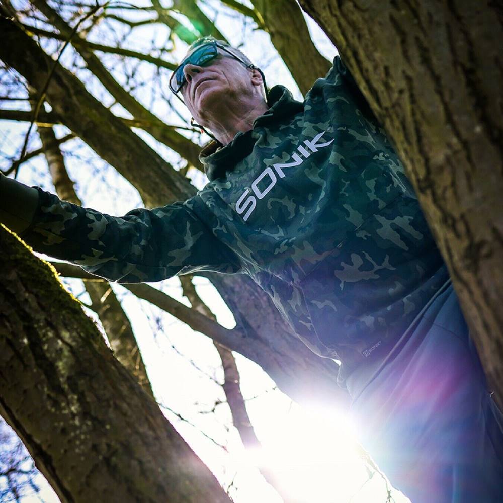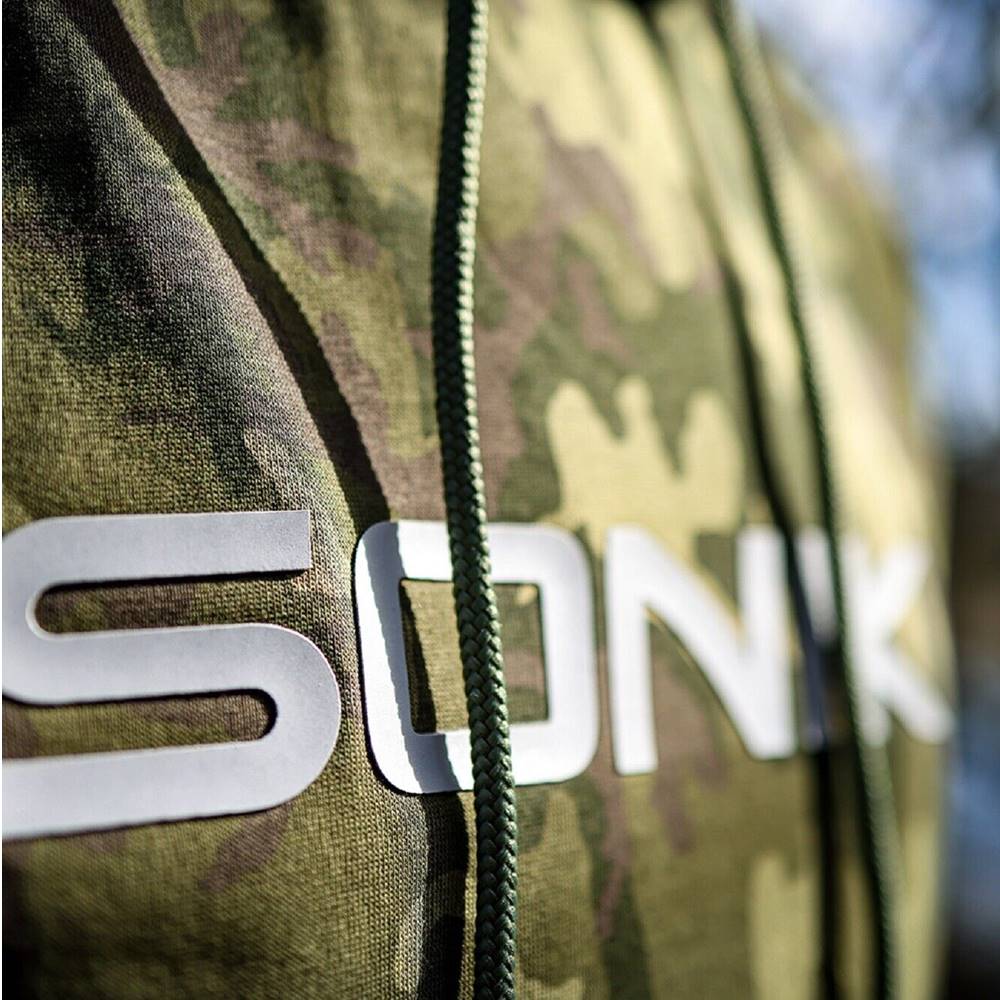 Elegante, cómodo, muy práctico y diseñado con una capucha de doble capa detallada para mayor comodidad. El Sonik Hoody Camo está fabricado con un forro polar de tres hilos, 300GSM compuesto por 80 por ciento de algodón y 20 por ciento de poliéster, lo que garantiza calidez y comodidad. Las características añadidas incluyen puños elásticos, logotipo trasero y estampado de logotipo de gran construcción en la parte delantera, capucha con cordón y bolsillo delantero estilo calentador de manos de fácil acceso. Insignia de goma en el dobladillo.