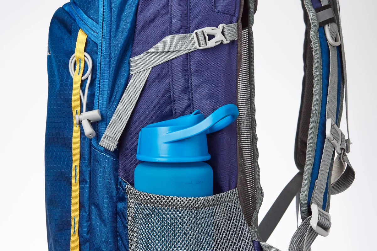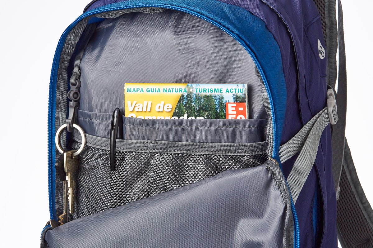 Funda para la lluvia, tensor de pecho, silbato de emergencia, cintas compresión lateral, bolsillo rejillas laterales, riñonera con bolsillos, acceso hydrobag, modelo unisex.