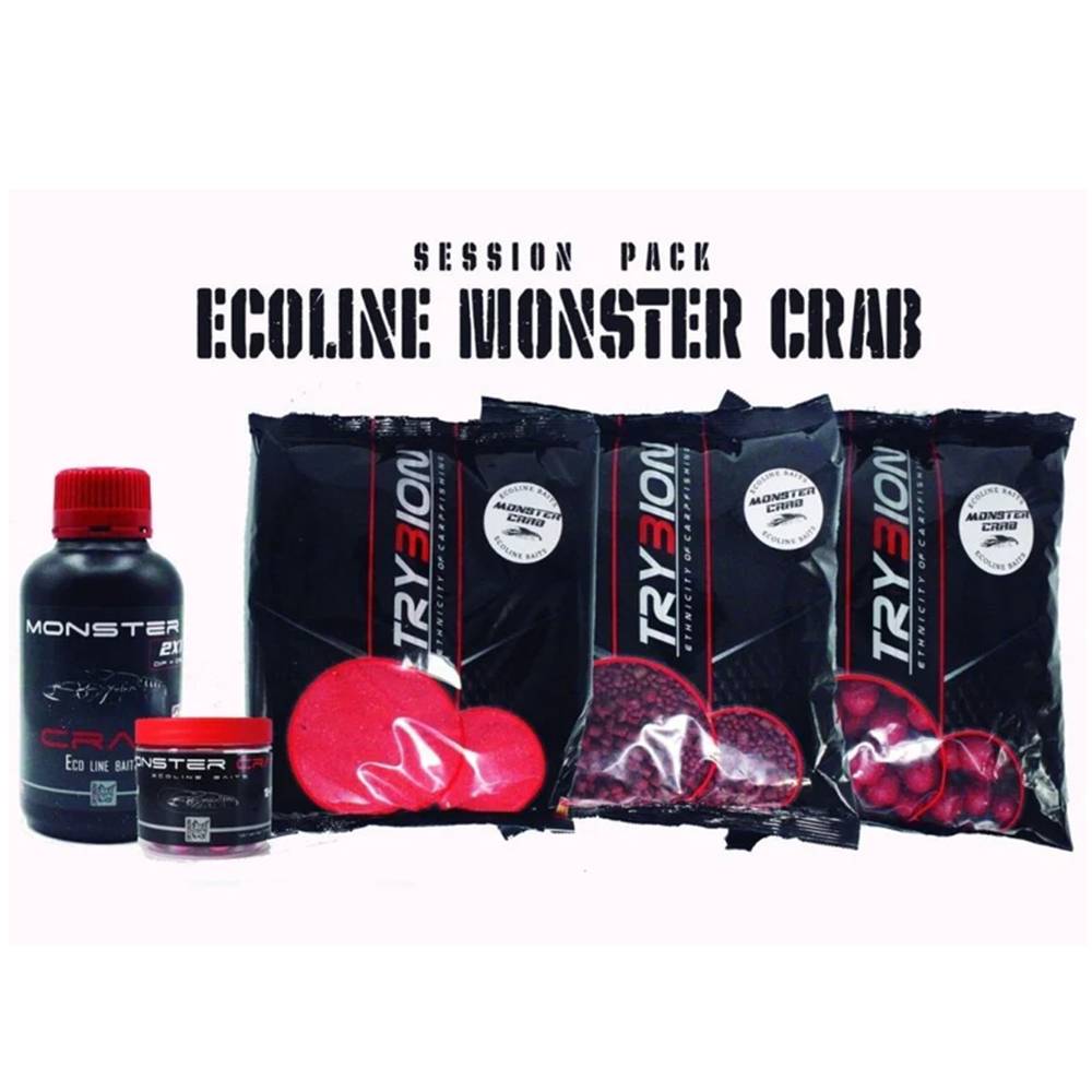 Lote de cebos de la marca Trybion gama Ecoline sabor Monster Crab. Cebos fabricados con ingredientes de máxima calidad, de textura increíble y gran rendimiento en mantenimiento de cebaderos. Pack perfecto para fabricar tus mallas y bolsas de PVA, especial para la pesca de carpfishing.