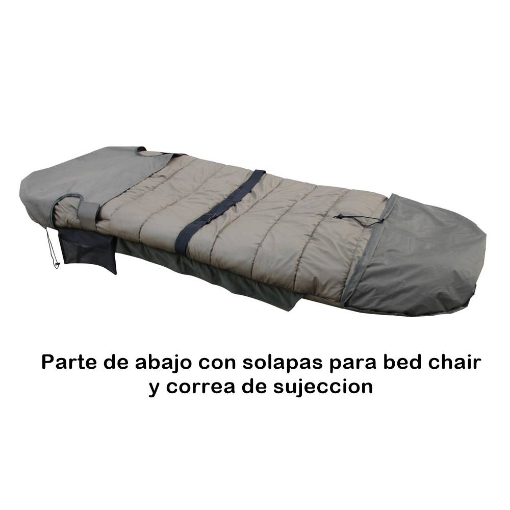 Equipado con correas, sistema de velcro y fundas para fijarlo a la tumbona.