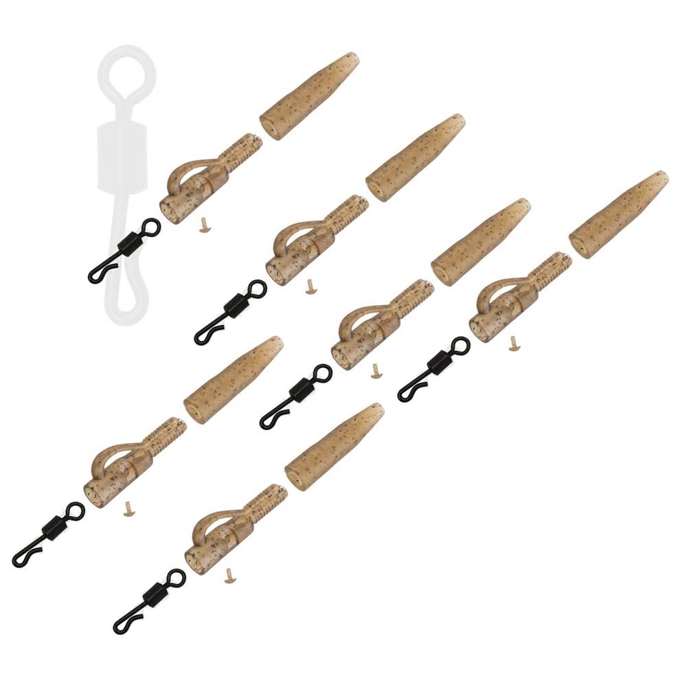 Contenido del paquete: 6 fundas de goma para la cola, 6 clips de plomo, 6 pasadores de retención para una correcta fijación del emerillón, 6 emerillones de cambio rápido de primera calidad con acabado mate antirreflectante