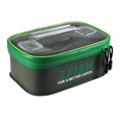 La marca checa ZFISH presenta una nueva línea de cajas y bolsas de almacenamiento estancas para pescadores. A primera vista, te sorprenderá el diseño elegante con color verde oliva y bordes de contraste distintivos. A diferencia de los bolsos convencionales disponibles en el mercado, estos están equipados con cremallera impermeable y son 100% impermeables. Estas bolsas son una excelente opción para los pescadores de spinning, pero también para los pescadores de carpas y comederos. Caja de almacenamiento tamaño S – especificación: Tamaño: 21x15x9 cm 100% impermeable Perfecto almacenable Práctico agarre en la tapa Nuestro consejo: las 4 piezas de la caja de almacenamiento S encajan exactamente en el tamaño de la bolsa L